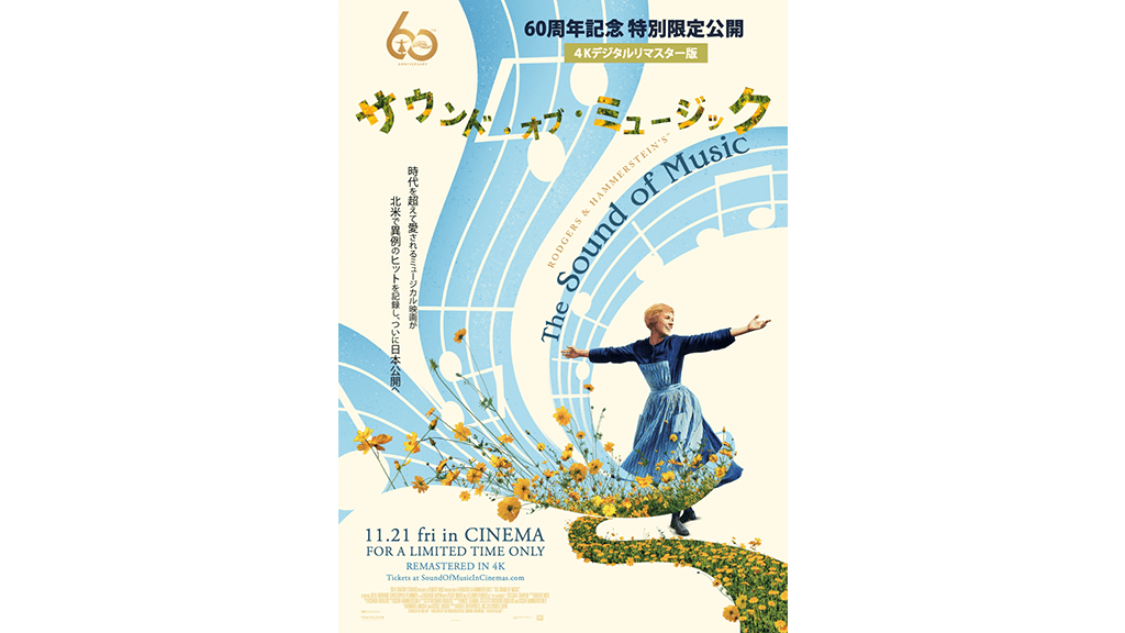 誰もが愛する数々の名場面が今まで見たことのない美しい映像で甦ります。ロジャース&ハマースタイン™の不朽の名作ミュージカル映画『サウンド・オブ・ミュージック』が、60周年を記念して丹念に4Kデジタルリマスターされ、かつてない鮮明な映像と音響で輝きを増しました。北米で旧作としては異例のヒットを記録したミュージカルの金字塔が日本の映画館にもやってきます。