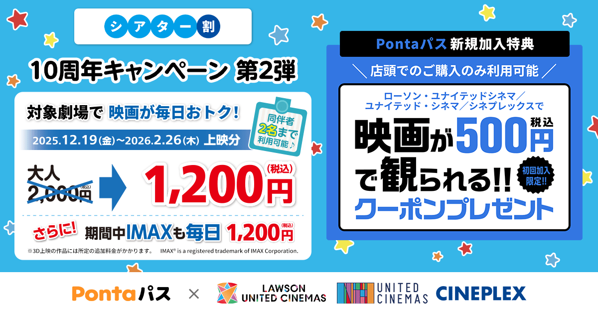 金額だけ見るとそうだが、auシネマ割の素晴らしさは、土日含めいつでも使えること。しかも3人まで使えるからな。土日に家族で行くときにも最高だ。